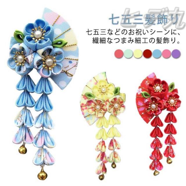 | 七五三髪飾り 七五三などのお祝いシーンに、繊細なつまみ細工の髪飾り。 水引飾りが可愛い七五三髪飾り!3才、7才 小学生の卒業式にも! 1つあればお顔周りがパッと華やぐので、特別な日の装いのワンポイントとして最適です。 | |