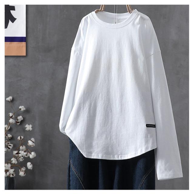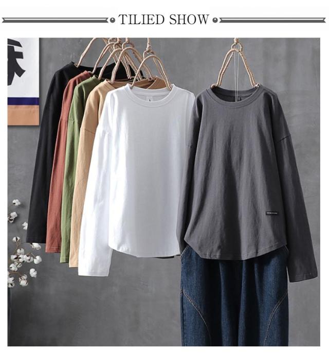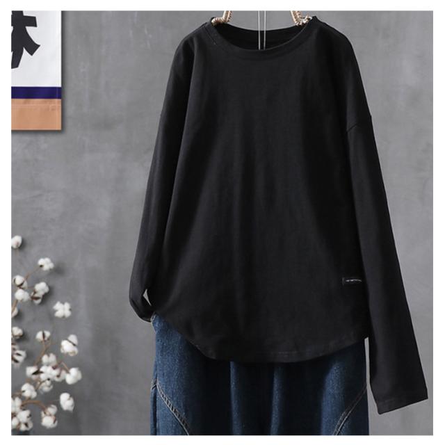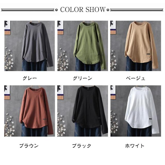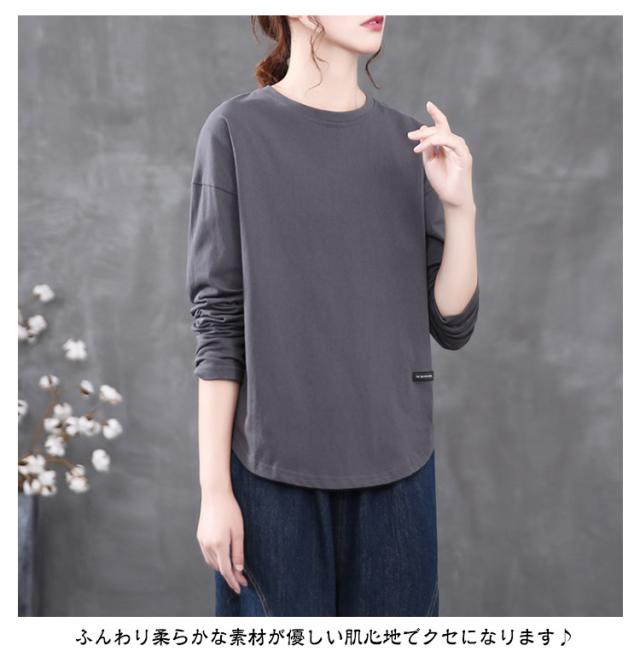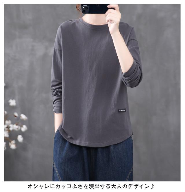 ラウンドヘム カットソー ロンティー カットソー 無地 レディース tシャツ プルオーバー ロンt 着丈長め 長袖 シンプル 着丈長め 大きいサイズ おしゃれ 重ね着 ロングtシャツ ゆったり スーツ インナー 大人