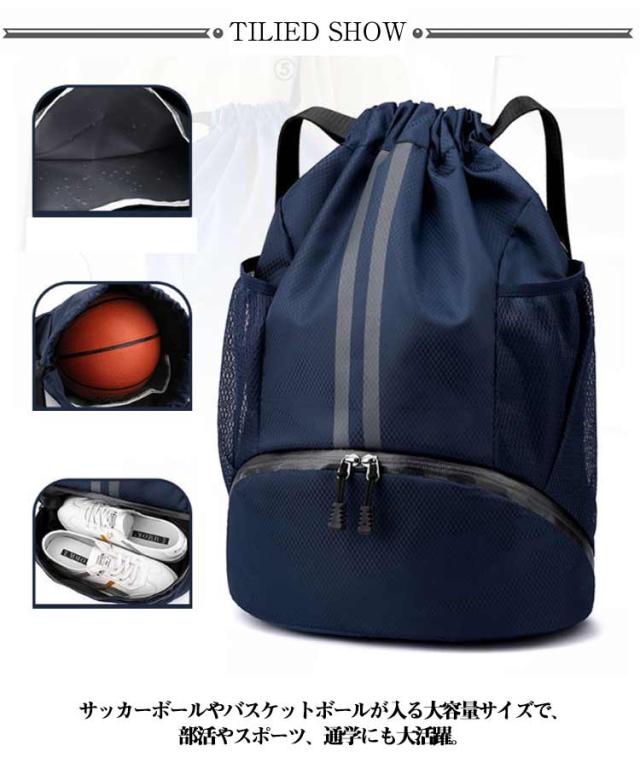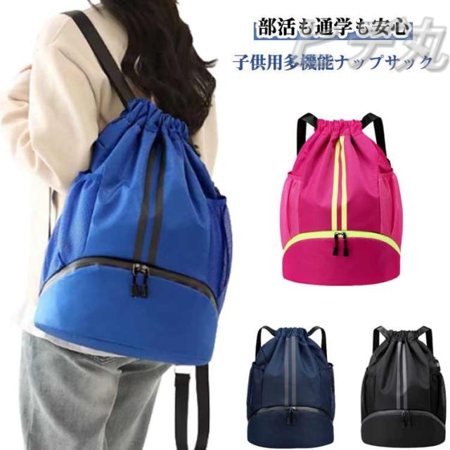 ナップザック 通学 ナップサック 撥水 シューズ収納 大容量 靴ポケット スポーツ キッズ ジュニア 子供 部活 ボール収納 体操着入れ プールバッグ サッカー バスケ ナップサック 大人 ジムサック