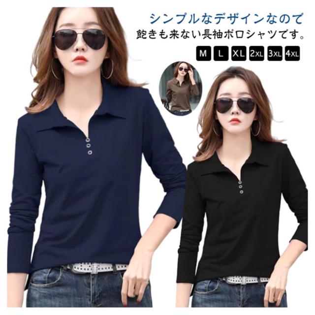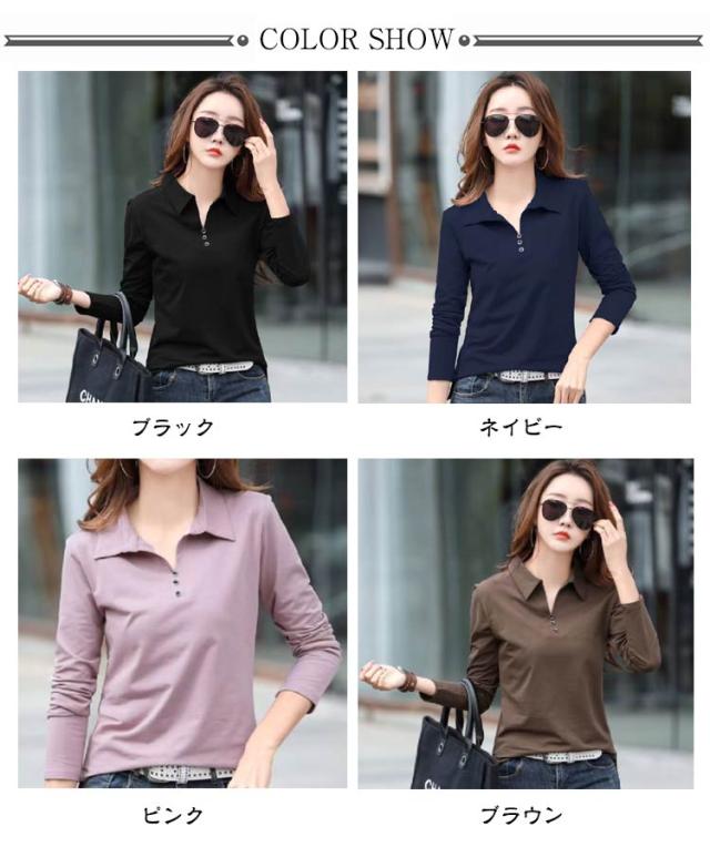 ポロシャツ レディース シャツ ポロTシャツ 長袖 トップス ポロシャツ カットソー 長袖 襟付き 無地 スリム スキッパーシャツ タイト とろみ スキッパー タイト Vネック OL 通勤 通学 ビジネス カットソー