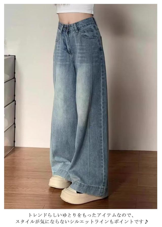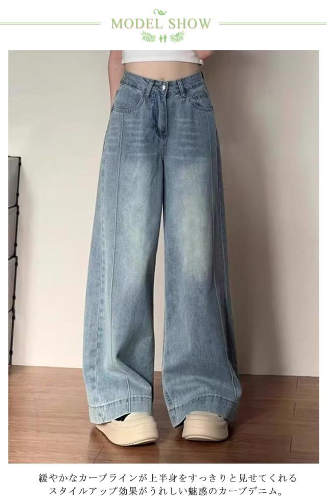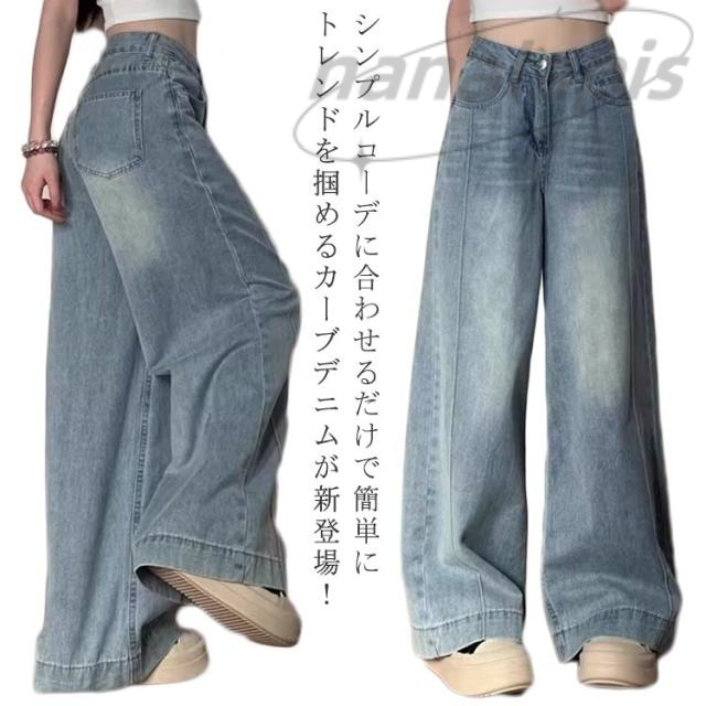 カーブパンツ 春 カーブ ワイド デニム 夏 ジーパン パンツ レディース デニムパンツ ワイド ジーンズ カーヴィーパンツ ボトム ワイドパンツ 薄手 軽量 ゆったり 体型カバー ハイウエスト ジーンズ 大きいサイズ 大人