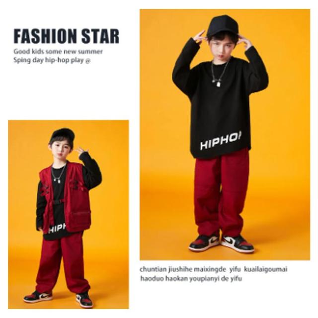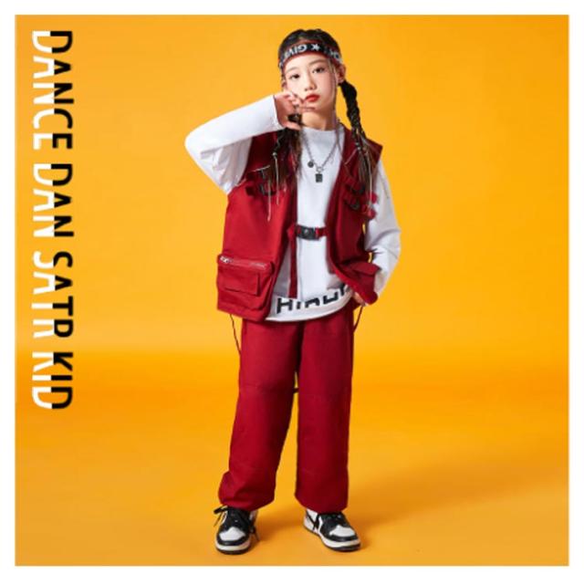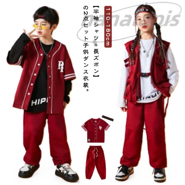 ジャズダンス 男の子 キッズ 練習着 半袖シャツ ダンスウェア ベースボールシャツ レッド カーゴパンツ 子供 赤 ダンス服 女の子 セットアップ ヒップホップ ジョガーパンツ 長ズボン 演出服 ダンス衣装 韓国 K-POP HIPHOP 白 オレンジ 派手 キッズダンス衣装
