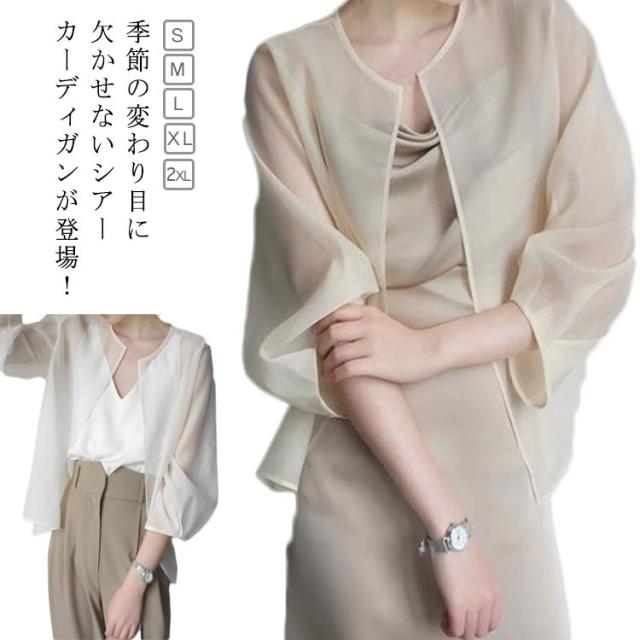 レディース シースルー 冷房対策 シアートップス きれいめ シースルー カーディガン シフォン 薄手 透け感 ノーカラー シアートップス ゆったり 体型カバー 紫外線対策 UVカット 夏 カジュアル シアーカーディガン 羽織 ライトアウター