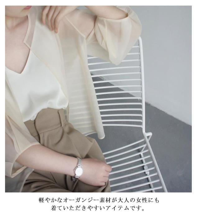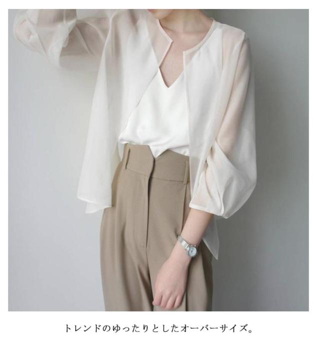 | 軽やかなオーガンジー素材が大人の女性にも着ていただきやすいアイテムです。 季節の変わり目に欠かせないシアーカーディガンが登場! トレンドのゆったりとしたオーバーサイズ。 夏には日差し・冷房対策にもおすすめ。 ノースリーブやキャミソールの上に さっと羽織れるのでこれからの季節にぴったりな1枚です。 デニムやきれいめなスラックス、ロングスカート等、様々な定番ボトムと好相性のアイテムです。 | |