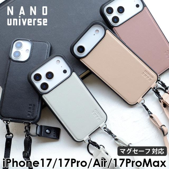 iphone17 17pro air 17promax ケース ブランド nano universe ナノユニバース MagSafe 対応 ストラップ付き 背面ケース スマホケース スマホショルダー メンズ レディース iphone17 ケース 耐衝撃 iphone17pro ケース iphone air ショルダー 肩掛け カード 収納 マグセーフ