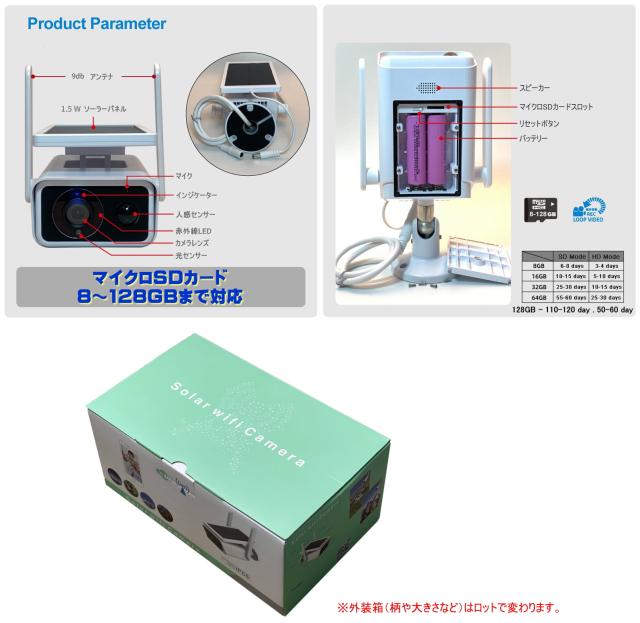 マイクロSDカード128GBでの最大記録日数は120日間になります。(SD画質・1日10検知以内を想定)