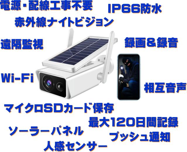 送料無料 税込み 最新 TB-SOL ソーラー パネル 防犯 カメラ 電源不要 工事不要 人感センサー ソーラーカメラ 録画 動画 wi-fi ワイヤレス インターネット ネットワークカメラ iphone android アプリ 日本語 防犯 防水 屋外 wifi スマホ 通知 屋外 太陽 電池 充電 簡単 設置