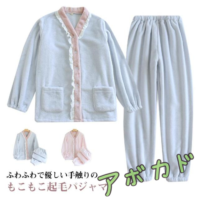 | ふわふわで優しい手触りのもこもこ起毛パジャマ。 肌触りがよく、見た目よりも軽いので、フワッと着用できるので着心地は抜群! フリルレース&パイピングでシンプル過ぎずお洒落!お部屋でも可愛く過ごせちゃう♪ スマホや小物を入れておくのに欠かせないポケット付きなのも嬉しいポイント。 ウエストゴムで楽ちんリラックス♪長時間着るものだから、着心地にもこだわりを。 お気に入りルームウェアでリラックスタイムを楽しんでみてはいかが? | |