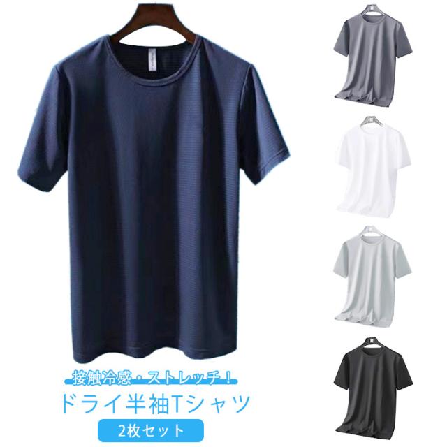 【2枚セット】メッシュTシャツ 半袖 Tシャツ メンズ クルーネック ドライ メッシュ tシャツ 吸汗速乾 接触冷感 夏用 インナーウエア ストレッチ 涼しい 作業着 通気性 春 夏 秋 ランニング ゴルフ スポーツウェア ルームウェア インナー 肌着 下着 大きいサイズ カジュアル
