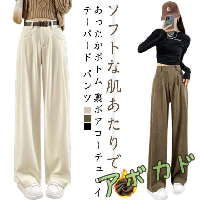 ワイドパンツ 裏起毛 パンツ テーパードパンツ 秋 きれいめ ストレッチ 冬 テーパードパンツ ロングパンツ あったか ハイウエスト おしゃれ コーデュロイ レディース ボトムス 防寒 締め付けない ウエストゴム ゆったり 防風 部屋着 ルームウェア もこもこ