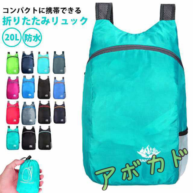 折りたたみ リュックサック 超軽量 ナップサック リュック 防水 コンパクト 20L サブバッグ キャンプ アウトドア バックパック 旅行 登山 ウォーキング 散歩 マイバック 男女兼用 買い物 防災