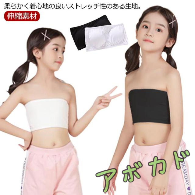 | 柔らかく着心地の良いストレッチ性のある生地。 シンプルな子供向けチューブトップブラです。 伸縮性抜群なので締め付け感もなくノンストレスな着心地で体にフィット! パットを取り外してお洗濯すると型崩れも防げます。 ヒップホップダンスの衣装やレッスン着におすすめ。 黒と白の2色からお選びいただけます。 | |