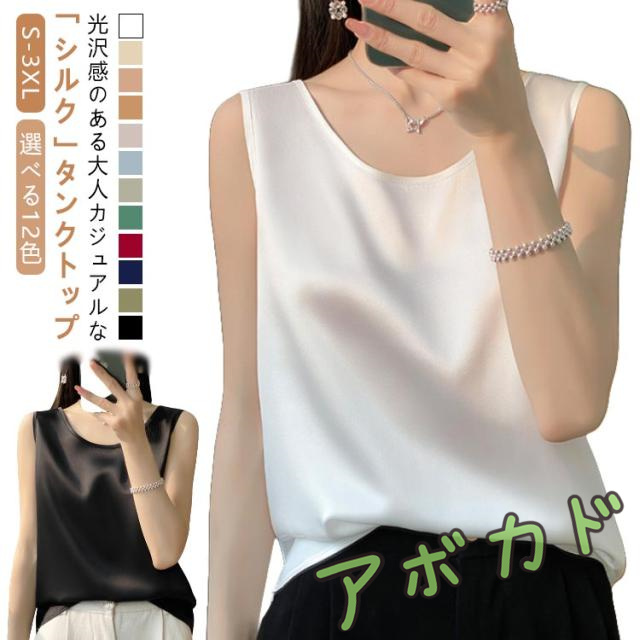 | 光沢感のある大人カジュアルな「シルク」タンクトップ 選べる12色 S-3XL ▼美しい落ち感のある生地で、しっとり健やか&天然シルク★ ▼滑らかな肌触りで、お肌にも心地よいやさしいシルクタンクトップに仕上がりました。 シルクは綿の1.5倍という優れた吸湿性を持っているため、 ◎蒸れることなく、お肌をサラサラの清潔な状態に保ちます。 ◎身につけることで素肌の乾燥を防ぎ、しっとりスベスベの肌へと導きます ◎吸湿・速乾に優れたシルクだから、汗をかいてもすぐにサラサラ、汗ばむ季節も朝まで快適です。 ●しっかり柔らかな光沢感のあるとろみ素材キレイめな生地感。 ●ゆったりシルエットでボディーラインをキレイに見せてくれる♪ ●女性の美しいラインを十分に引き出すうえ、デコルテラインもすっきりとキレイに見せてくれます。 ●天然の光沢が美しいシンプルなデザインでインナーとしてはもちろん色んな場面で活躍してくれる。 ●一枚持っておくと様々なコーデに合わせやすく、ノーマルなのに一味違う印象を醸し出せます! | |