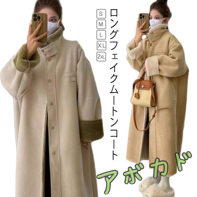 レディース コート アウター ロング丈 厚手 裏起毛 フェイクムートンコート フェイクムートンコート スエード調 暖かい ロングコート タートルネック ブルゾン フェイクスエード ジャケット エコファー エコムートン