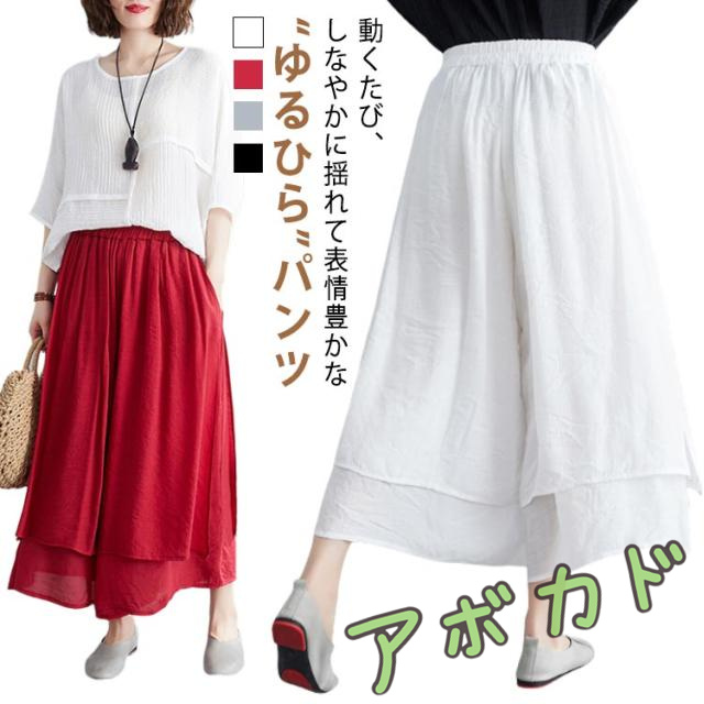 | 動くたび、しなやかに揺れて表情豊かな“ゆるひら”パンツ。 軽かく、柔らかく通気性が良い、肌にべたつきも感じず、夏はこれ一枚でオシャレに着ていただけます。 落ち感のある上品な素材で、女性らしさを惹き立ててくれて大人女子の魅力を格上げしてくれます。 体型もカバー出来るし、デザインも可愛いし、カジュアルの格好にはもってこいのワイドパンツ。 どんなトップス合わせもセンス良くお洒落が完成。 | |