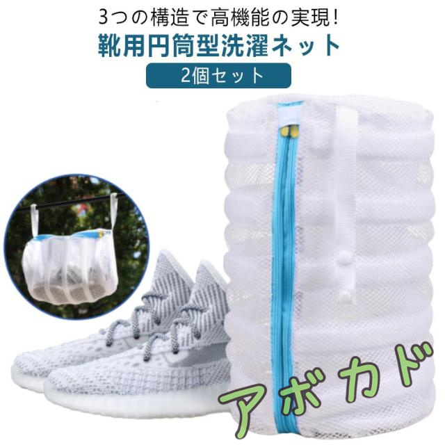 | 吊り下げ&折りたたみ可能 3つの構造で高機能の実現! 靴用円筒型洗濯ネット 2個セット 【円筒型の洗濯ネットでしっかりと汚れを落とす!】 円筒型の洗濯ネットは、平たい角型に比べ立体的な構造になっているため、 ネットの中で洗濯物が動くので汚れが落ちやすいのが特徴です。 大容量で大きいサイズのシューズ(28cm程度まで)も洗えます! 【3つの構造で高機能の実現!】 構造1 7つのスポンジで衝撃、騒音を抑える ネットを囲う様に設置された5つの円環スポンジ+2つのサイドスポンジは、 洗濯中の内外からの衝撃を吸収、靴をしっかり守り騒音も軽減します。 構造2 粗いメッシュで洗浄力UP ネット外側は網目の粗いメッシュ生地。 網目の粗いメッシュ生地は、洗剤や水が十分に行き届き、汚れが落ちやすくなります。 構造3 細いメッシュでダメージ回避 ネット内側の仕切り部分は網目の細いメッシュ生地。 網目の細いメッシュ生地は、ネット内での洗濯物同士の絡み合いや摩擦を抑え、洗濯物の損傷を防ぎます。 ネットの内部はダブルポケットになっていて、靴を分けて洗濯できるのでよりダメージを軽減できます。 便利なダブルファスナーとファスナー収納カバー 【掛け紐付きでそのまま干せる!】 掛け紐が付いているので、洗濯が終わったらそのままネットごと干し竿などに吊るして干せます。 ●水はけ抜群のメッシュ生地なのでネット自体も乾きやすい ●2個のスナップで吊り高さも調整できる まだまだ、ここもすごい! 衣類にも使える 折りたたみ可 | |