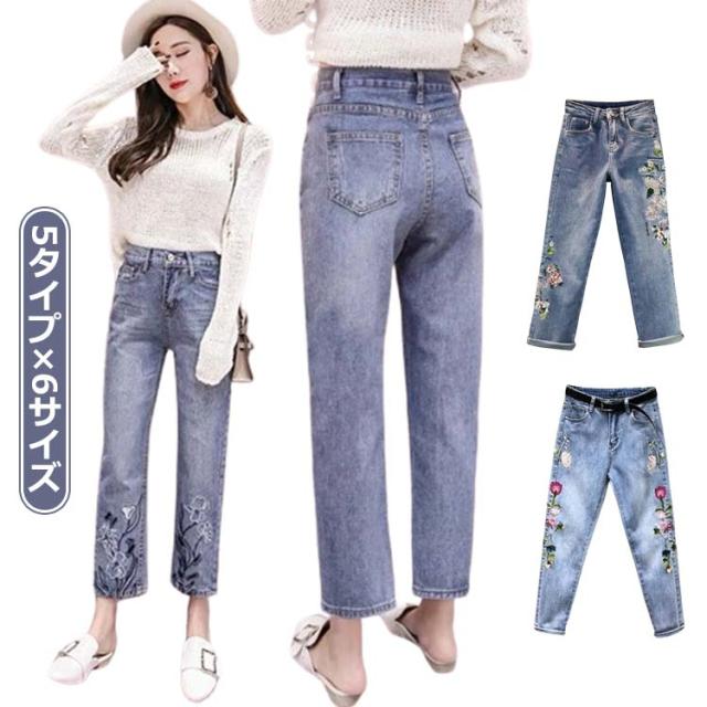 レディース デニムパンツ デニム レディースボトム 通勤 レディースデニム レディースデニムパンツ デニムパンツ 花柄 春秋 春秋 カジュアル 刺繍入り 可愛い レディース春物 かわいい おしゃれ お洒落 カジュアル ジーンズ ボトムス