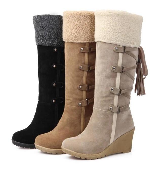 美脚 滑り止め 裏起毛 ミドルブーツ ロングブーツ ムートン ブーツ 防寒 ボアブーツ ムートンブーツ ムートンブーツ 保温 冬 ふわふわ 細見せ 雪用ブーツ スノーブーツ 滑らない スマート ウエッジソール 暖かい スリム ジョッキーブーツ 秋 冬 20代 30代