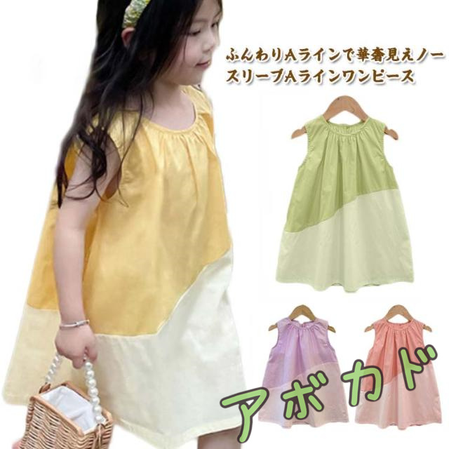 子供服 ワンピース タンクワンピース Aライン 子ども服 ワンピース ノースリーブ 切り替え配色ワンピース 女の子 夏 韓国子供服 ノースリーブ フレアワンピース キッズ 可愛い キッズワンピース 切り替え配色ワンピース 子供ワンピース 送料無料 イエロー グリーン ピンク