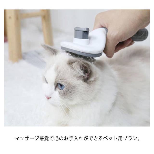 | 猫の毛(犬の毛)を簡単にお手入れするために使用されるブラシです。 ブラッシングするだけで犬も猫も気持ちいい! マッサージ感覚で毛のお手入れができるペット用ブラシ。 人体工学デザインの持ち手で滑りにくくて操作しやすい。 ワンタッチの伸縮タイプで便利。 壁かけの穴付きで、使わない時は壁かけも可能。 ブラッシング後の抜け毛は、ワンプッシュでまとめてゴミ箱にポイ! 定期的なブラッシングは、猫の毛玉や皮膚疾患の予防に役立ちます。 | |