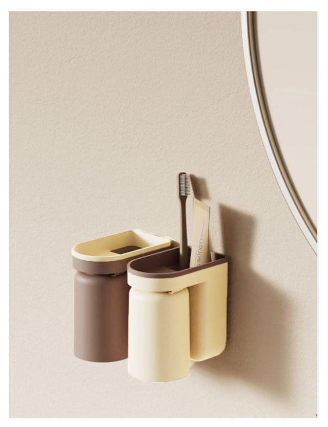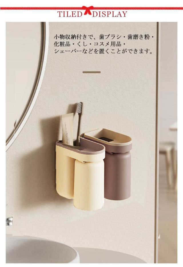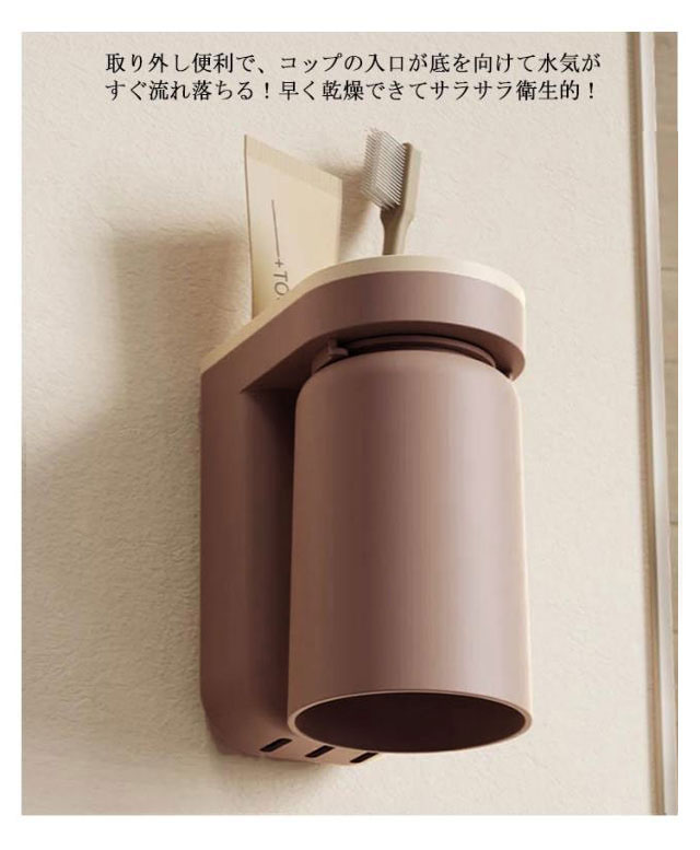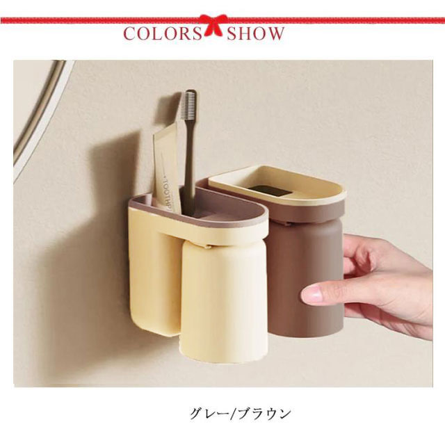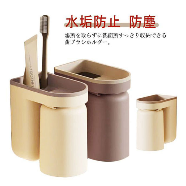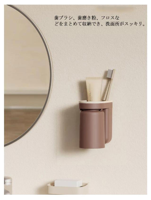 歯ブラシホルダー コップスタンド 2個セット 歯ブラシたて 壁掛け 歯磨き粉 カップ スタンド 洗面所 水回り すっきり 収納 水垢防止 防塵 衛生 取り付け簡単 吊り下げ お掃除簡単 グレー ブラウン
