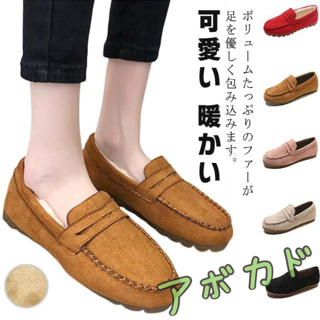 モカシン レディース ボア パンプス ローファー モカシン シューズ モカシン シューズ ローファー ムートン スエード調 もこもこ あったか スリッポン 秋 冬 大きいサイズ シューズ 美脚 通勤 大人 おしゃれ 秋冬 防寒