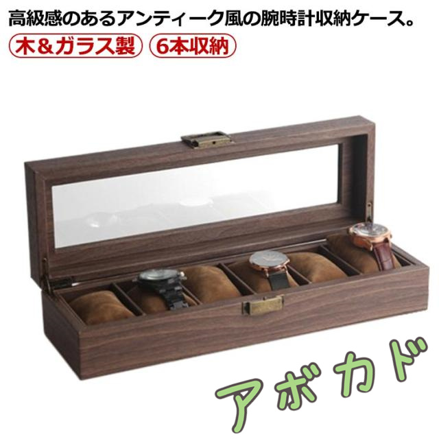 腕時計 収納ケース 6本収納 木製 時計ケース 腕時計ケース 6本 時計収納 コレクションケース 時計ボックス ウォッチボックス 高級感 上品 金具 ガラス 窓付き ディスプレイ 展示 ウォッチケース アンティーク 腕時計ボックス レディース メンズ
