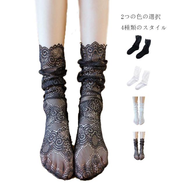 靴下 フリーサイズ レース レースソックス ソックス レース靴下 レディース フリルソックス 春夏秋 ハイソックス レース 半レース 総レース ロングソックス くつした スニーカーソックス 2足セット