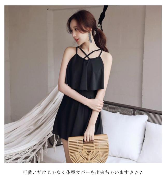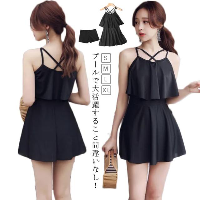 水着 水着 黒 ブラック カップ付き水着 ワンピース 大学生 可愛い レディース スイムウェア 中学生 水着 ショートパンツ付き 高校生 50代 インナーショーツ 体型カバー UVカット 女の子 プール 露出控えめ 水着 フリル 海水浴 20代 30代 40代 タンキニ
