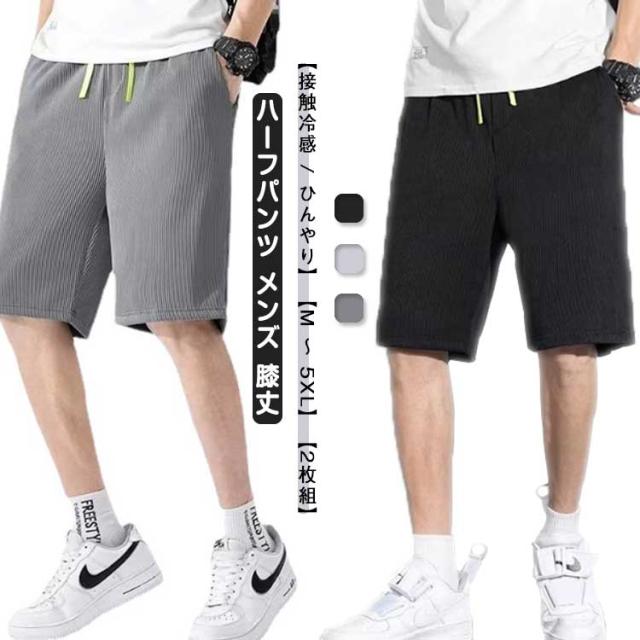 メンズ ポケット リブ 【2枚組】 クール 夏 ハーフパンツ 冷感パンツ ボトムス 【2枚組】 コーデュロイ 短パン 涼しい ひんやり ショートパンツ ストレッチ 柔らか 接触冷感 部屋着 大きいサイズ おしゃれ かっこいい カジュアル 無地 スポーツ ランニング 膝丈
