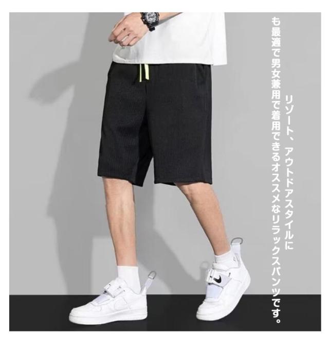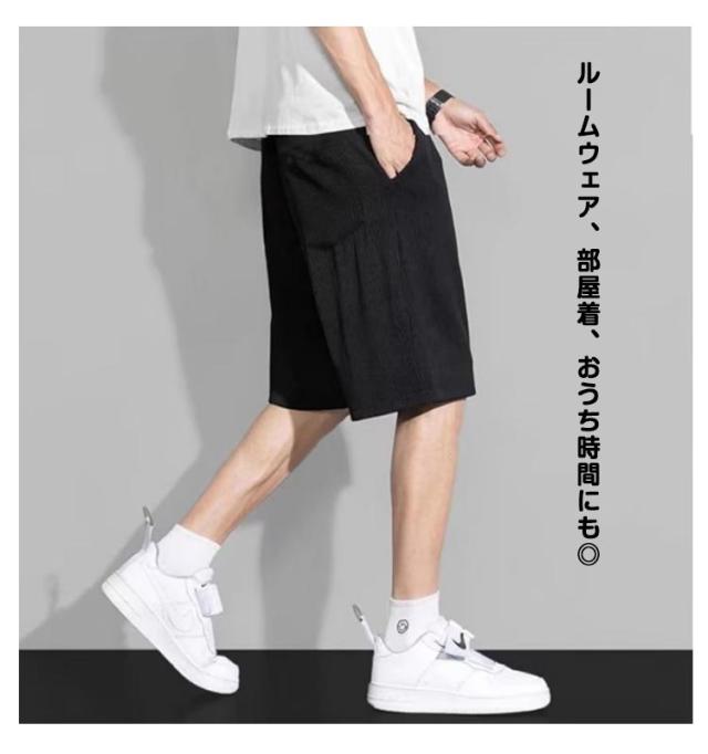 メンズ ポケット リブ クール 夏 ハーフパンツ 冷感パンツ ボトムス コーデュロイ 短パン 涼しい ひんやり ショートパンツ ストレッチ 柔らか 接触冷感 部屋着 大きいサイズ おしゃれ かっこいい カジュアル 無地 スポーツ ランニング 膝丈