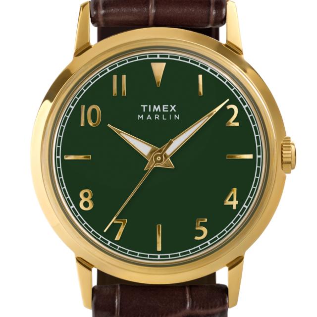 タイメックス Marlin マーリン 34mm TW2Y37800 メンズ レディース 腕時計 クオーツ 電池式 3針 グリーンダイヤル ブラウン 革ベルト