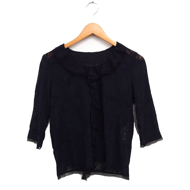 【中古】t.b ティービー センソユニコ レース ブラウス 6分袖 フリル 40 ブラック 黒 /FT17 レディース