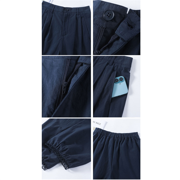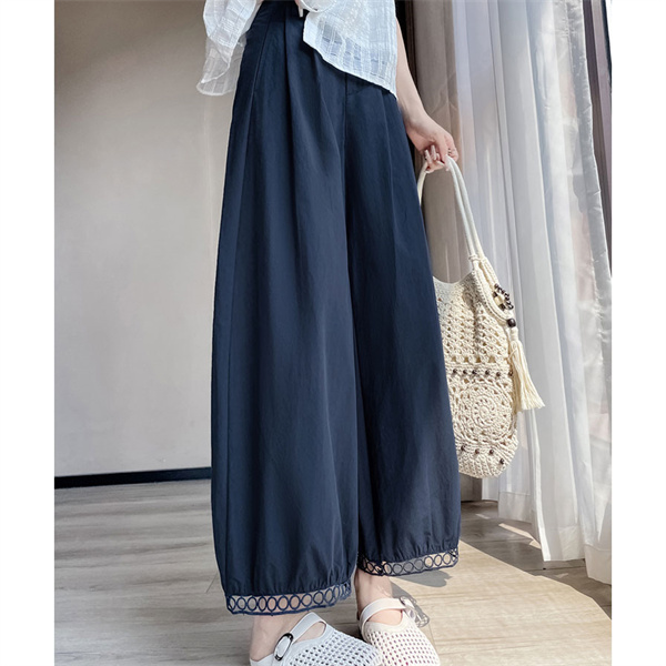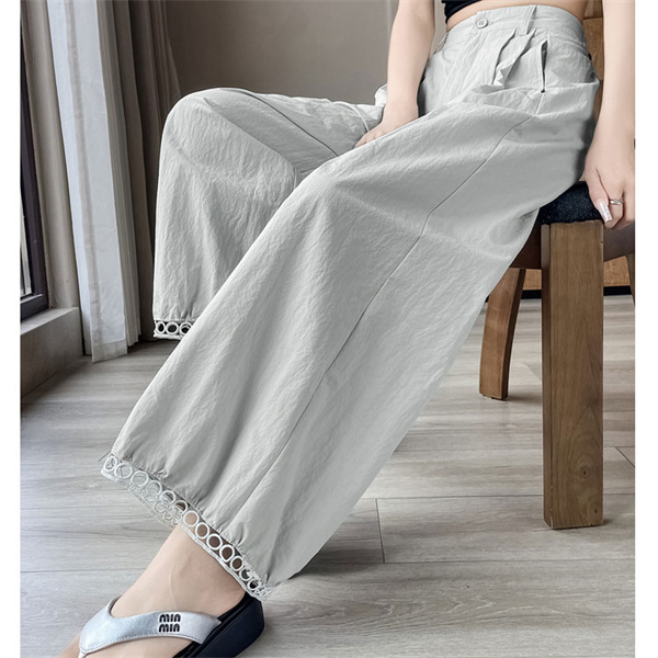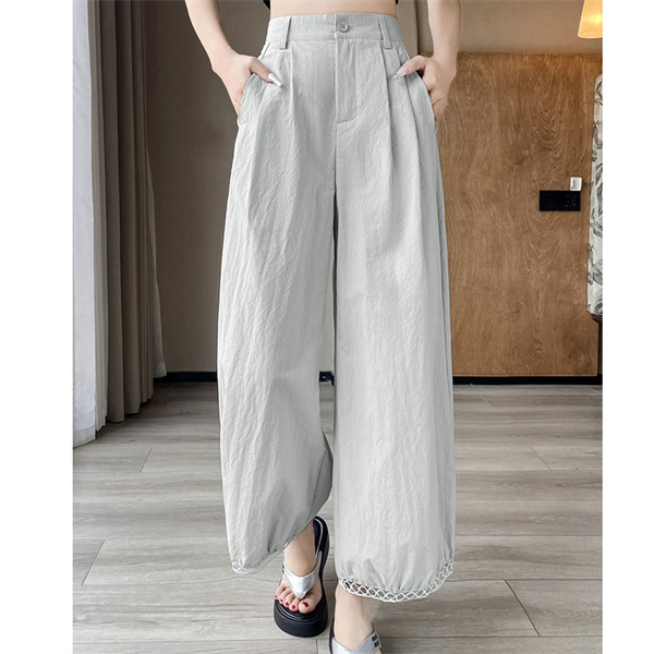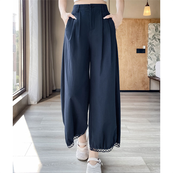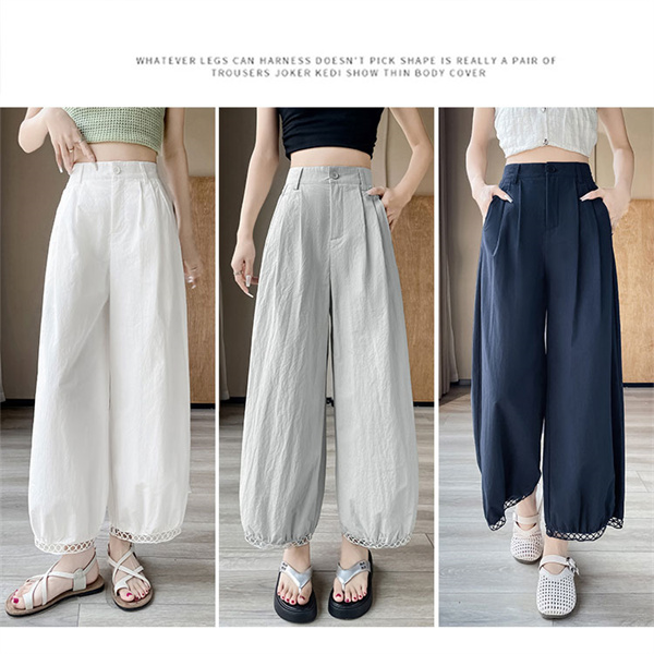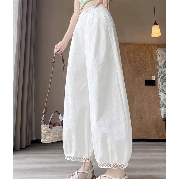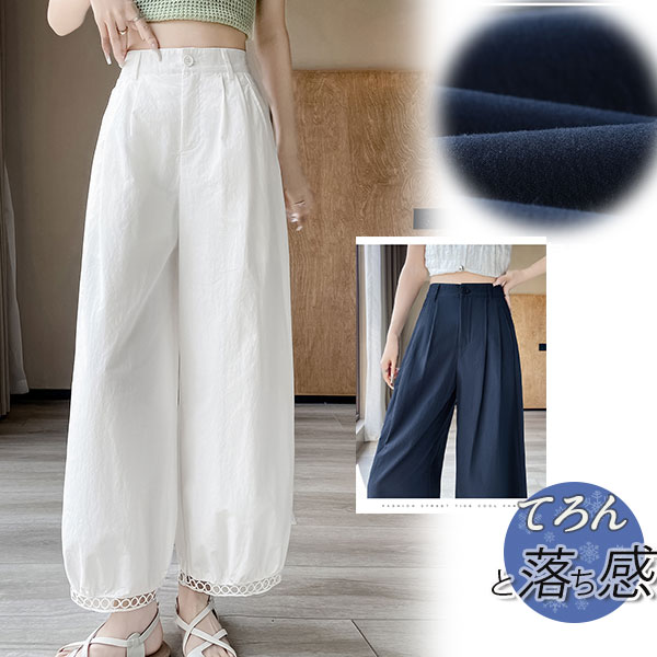 パンツ レディース 九分丈 タック スカラップレース バルーンパンツ ボトムス 吸水速乾 ワイドパンツ 接触冷感 バレル ひんやり 薄手 ゆったり