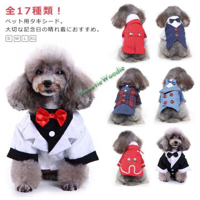 | 全17種類!ペット用タキシード。大切な記念日の晴れ着におすすめ。 家族の御祝い事への参加時はもちろん、イベント時など視線を釘付け! 背中のボタンのアクセントや首元のリボンなどおしゃれ要素がイロイロ。 お誕生日、うちの子記念日、節句や七五三などなど記念日の撮影にもぴったりです。 | |