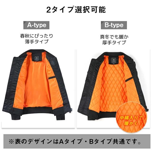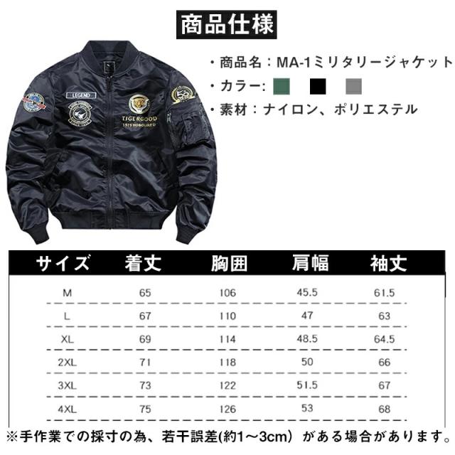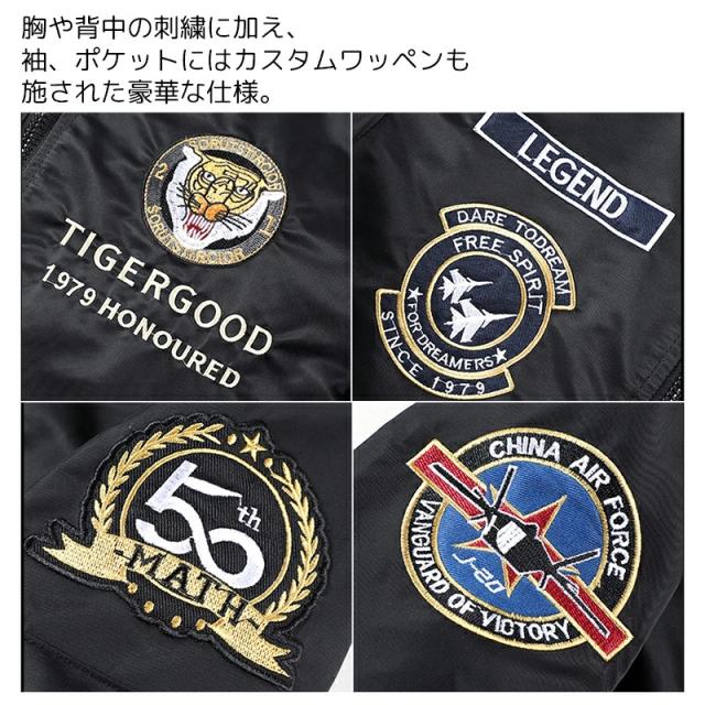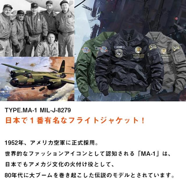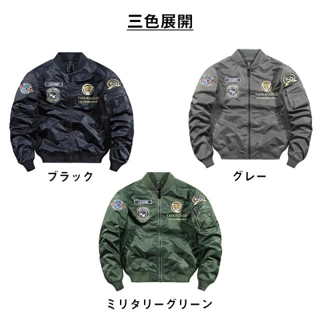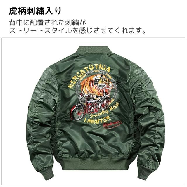 【薄手/厚手タイプ可選】ミリタリージャケット MA-1 メンズ 冬 オシャレ フライトジャケット エムエーワン ジャンパー コート モッズ 春 秋 冬 防寒 防風 中綿入り 虎 寅トラ 刺繍 ワッペン M〜4XL