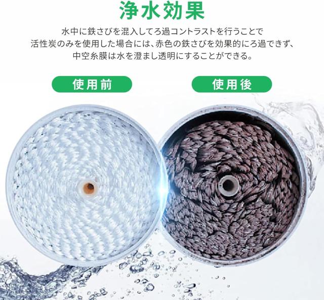 ろ材の種類:中空糸膜(ポリエチレン)、イオン交換繊維、活性炭、不織布