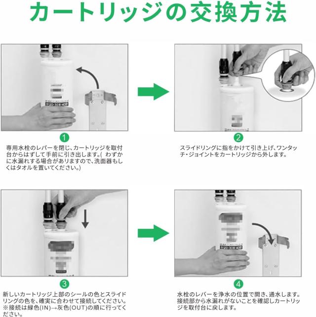 ■【交換の目安】約1年(1日20L使用した場合)使用水量・水質・水圧によって大幅に短くなることがあります。