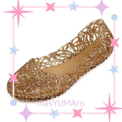 [PINCORAL] レディースゼリーサンダル,ソフト透かし彫りサマービーチサンダル (ゴールド, 大人, 26.0 CM, 数値, 日本の靴のサイズ寸法)