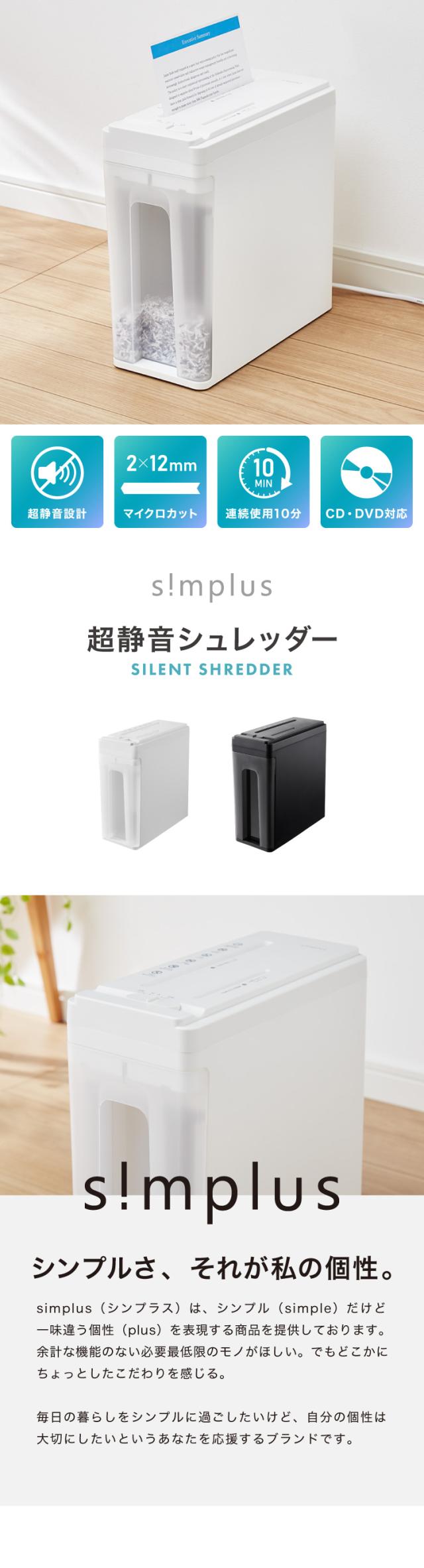 超静音シュレッダー マイクロカット simplus 電動 ホッチキス対応 家用 オフィス 業務用 コンパクト 個人情報 定格3枚 10分連続使用 【メーカー保証1年】