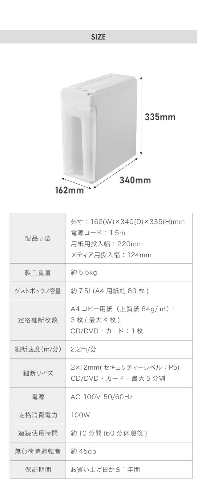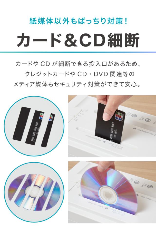 細断サイズ:2mm×12mmクロスカット CD/DVD・カード:最大5分割