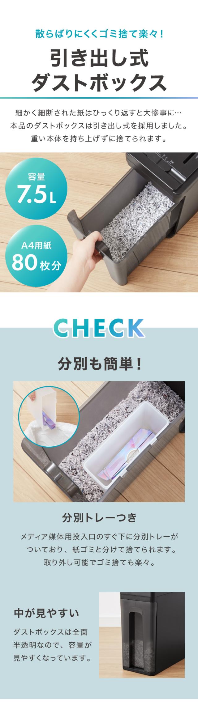 細断、電動シュレッダー、電動シュレッター、細断機、はさみ、セキュリティ対策、メディア、A4対応、コピー用紙、クロスカット、書類、静か