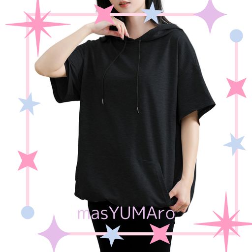 [7-LIVEHOUSE] パーカー レディース 半袖 フード付き Tシャツ トップス 春 夏 五分袖 カットソー プルオーバー 大きいサイズ ゆったり 体型カバー 薄手 無地 ファッション 通勤 カジュアル お…