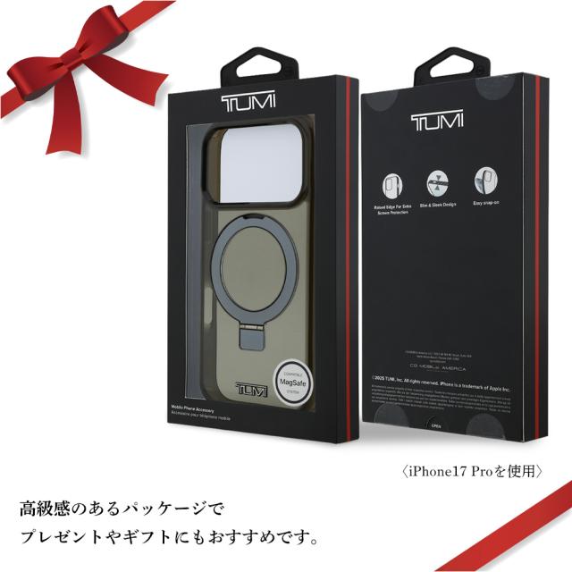 iPhone17ProMax ケース TUMI トゥミ スタンド リングスタンド ビジネス トラベル かっこいい シンプル ロゴ スタンド機能 動画視聴 スマホケース 公式 ライセンス 公式ライセンス AIR-J AIRJ エアージェイ iPhone 17 Pro Max アイフォーン セブンティーン プロ マックス アイフォン17プロマックス アイフォーン17プロマックス あいほん17ぷろまっくす あいふぉん17ぷろまっくす アイフォン あいふぉん あいほん カバー コンパクト 手になじむ 持ちやすい 落としにくい MagSafe対応 マグセーフ対応 MagSafe マグセーフ マグセイフ 磁石 マグネット ワイヤレス充電 ワイヤレスチャージャー TPU METTALIC スマホ オシャレ ブラック 黒 クロ くろ black TUMIオーナー ビジネスマン ビジネスシーン 高級 高級感 アメリカ プレミアム ブランド TUMIロゴ メタルロゴ 男性 彼氏 プレゼント ギフト カップル ペア お揃い 全キャリア対応 モバイルアイテム SIMフリー 耐衝撃 保護 カメラ保護 ラグジュアリー ユニセックス 大人かわいい エレガント 上品 セレクトショップ アパレル おしゃれ 衝撃吸収 傷に強い すり傷防止 擦り傷防止 丈夫 軽量 薄型 軽い 薄い スリム Qi充電 エアクッション ストラップホール