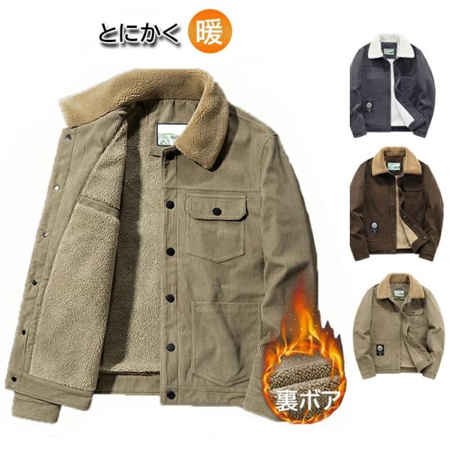 メンズ ジャケット コーデュロイ コート ブルゾン フライトジャケット ボアジャケット ミリタリージャケット 裏起毛 ボア 冬服 秋冬 厚手 暖かい 裏ボア アウター 防寒 保温 防風冬 カジュアル おしゃれ 欧米風