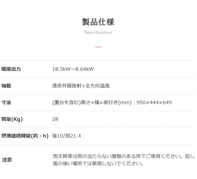 | KF-R19N 業務用大型ストーブ スペック情報 | |