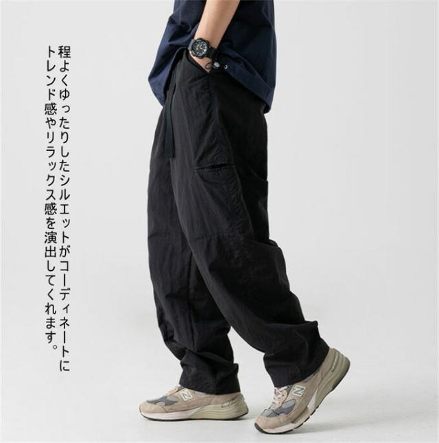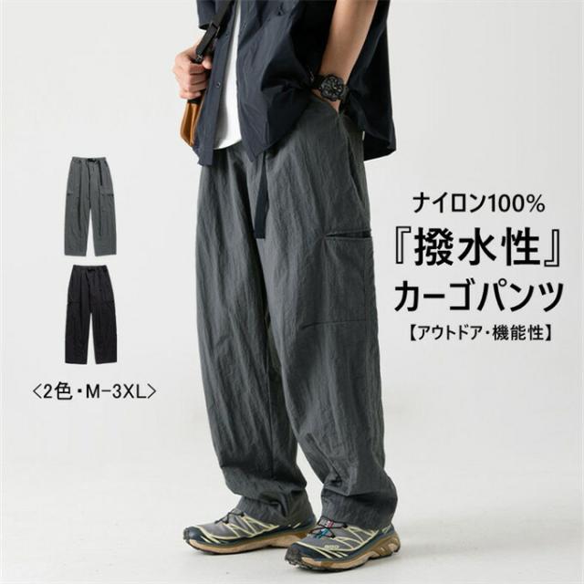 カーゴパンツ メンズ ロング丈 撥水性 ナイロンパンツ イージーパンツ ゆったり 機能性 アウトドア しわ加工 バックルベルト付き カジュアル ストリート スポーツ 男性 20代 30代 40代 大人