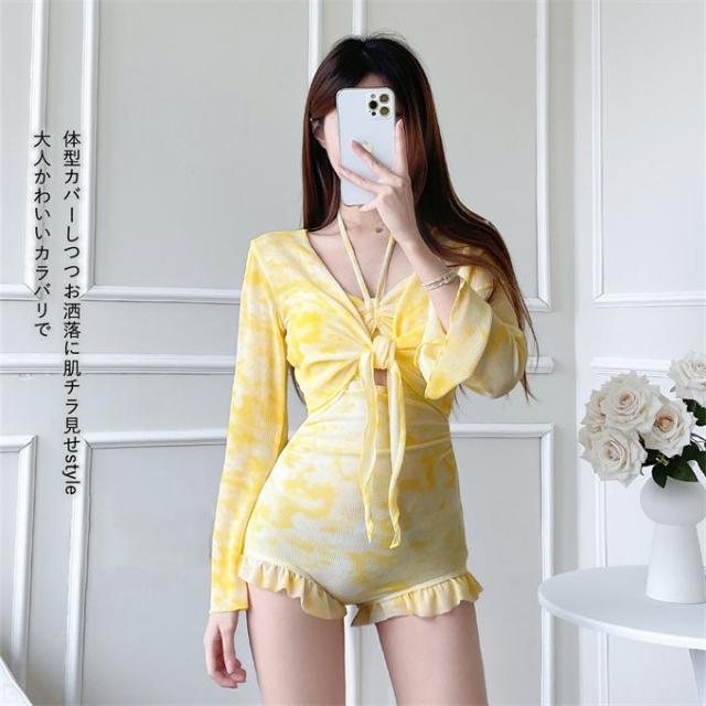 水着 レディース ワンピース 水着セット 2点セット 大きいサイズ オールインワン カーディガン 長袖 体型カバー 日焼け止め ゆったり 韓国 可愛い おしゃれ 海水浴 温泉 海 リゾート ファ 旅行