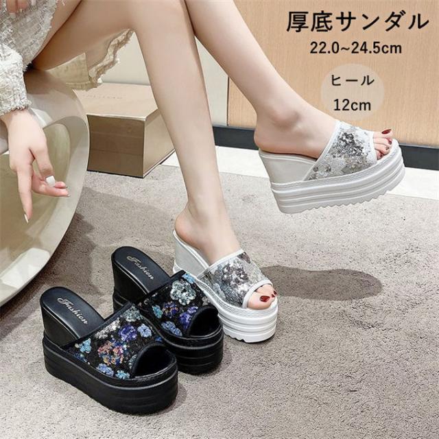 ミュール サンダル ウェッジヒール レディース ウェッジソール 厚底サンダル キラキラ 歩きやすい 柔らかい 疲れない 滑りにくい カジュアル きれいめ おしゃれ 疲れにくい 通勤 フォーマル 婦人靴