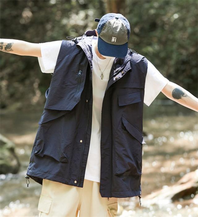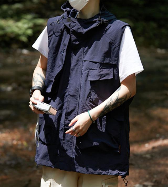 ベスト メンズ 春夏 ワークベスト アウトドア 大きいサイズ アウトドアベスト フード付き 薄手 フィッシングベスト お釣り 山歩き 撮影 ワーク 多ポケット ミリタリー 登山服